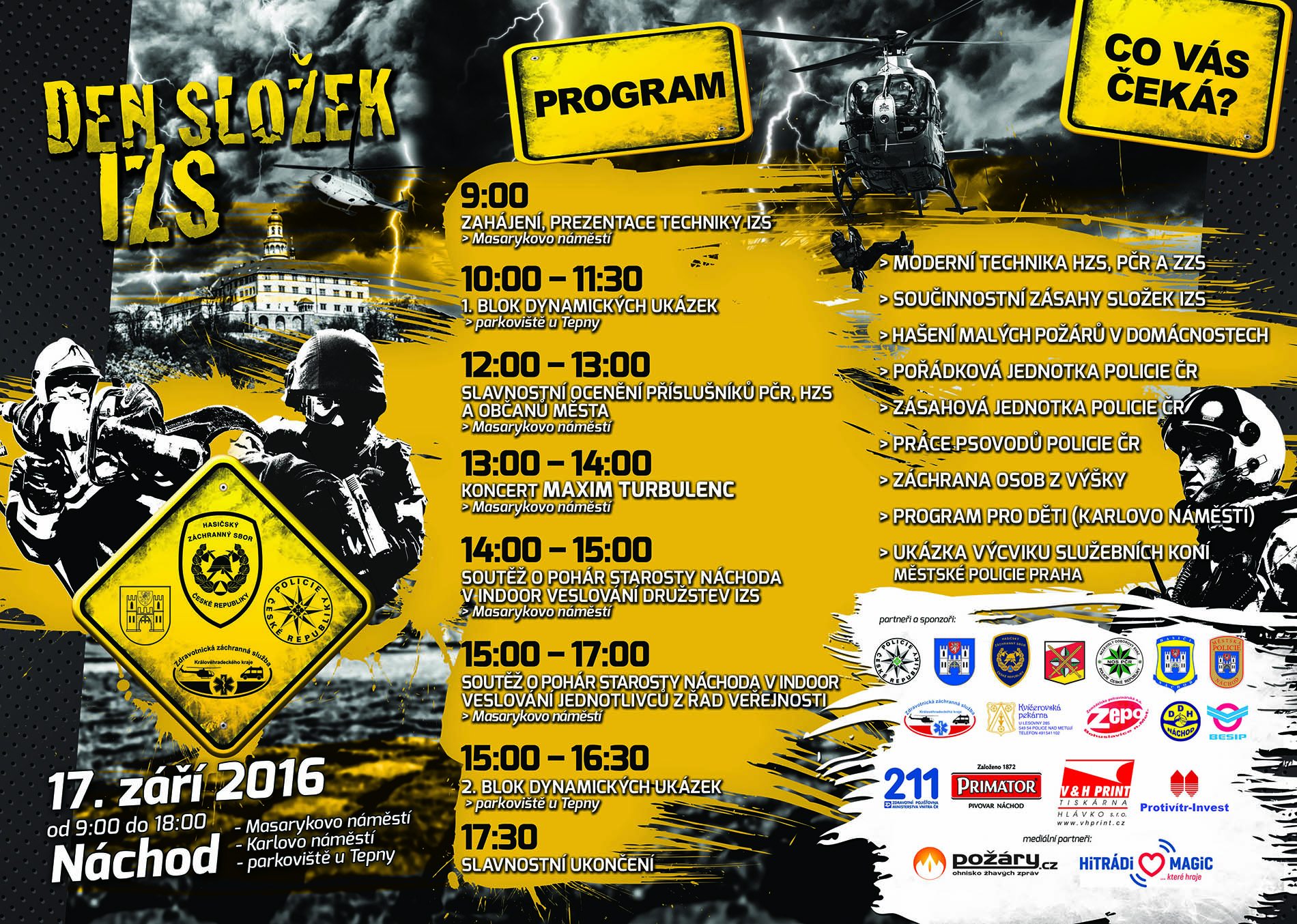 Dovolujeme si Vás pozvat na DEN SLOŽEK IZS, který se uskuteční v sobotu 17. září 2016 od 9 hodin na Masarykově náměstí, Karlově náměstí a na parkovišti u bývalé Tepny.