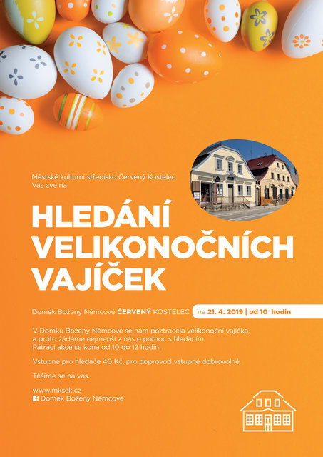 K dispozici dostanete mapku a vydáte se na pátrací akci domkem, kde žila známá spisovatelka Božena Němcová. Pokud naleznete všechna vajíčka a dokážete odpovědět na vědomostní otázky s velikonoční tématikou, můžete se těšit na odměnu.