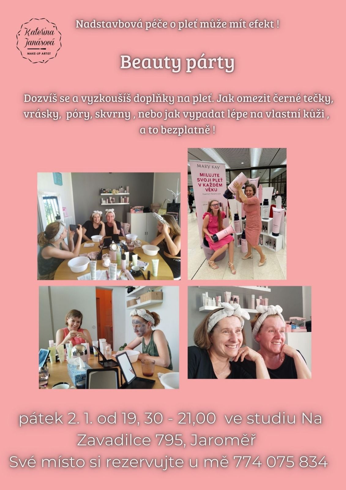 Přijďte na bezplatnou Beauty party, na které se dozvíte o péči o pleť a vyzkoušíte různé doplňky. Akce se bude konat v pátek 21. ledna 2025 ve studiu Na. Rezervujte si své místo co nejdříve.