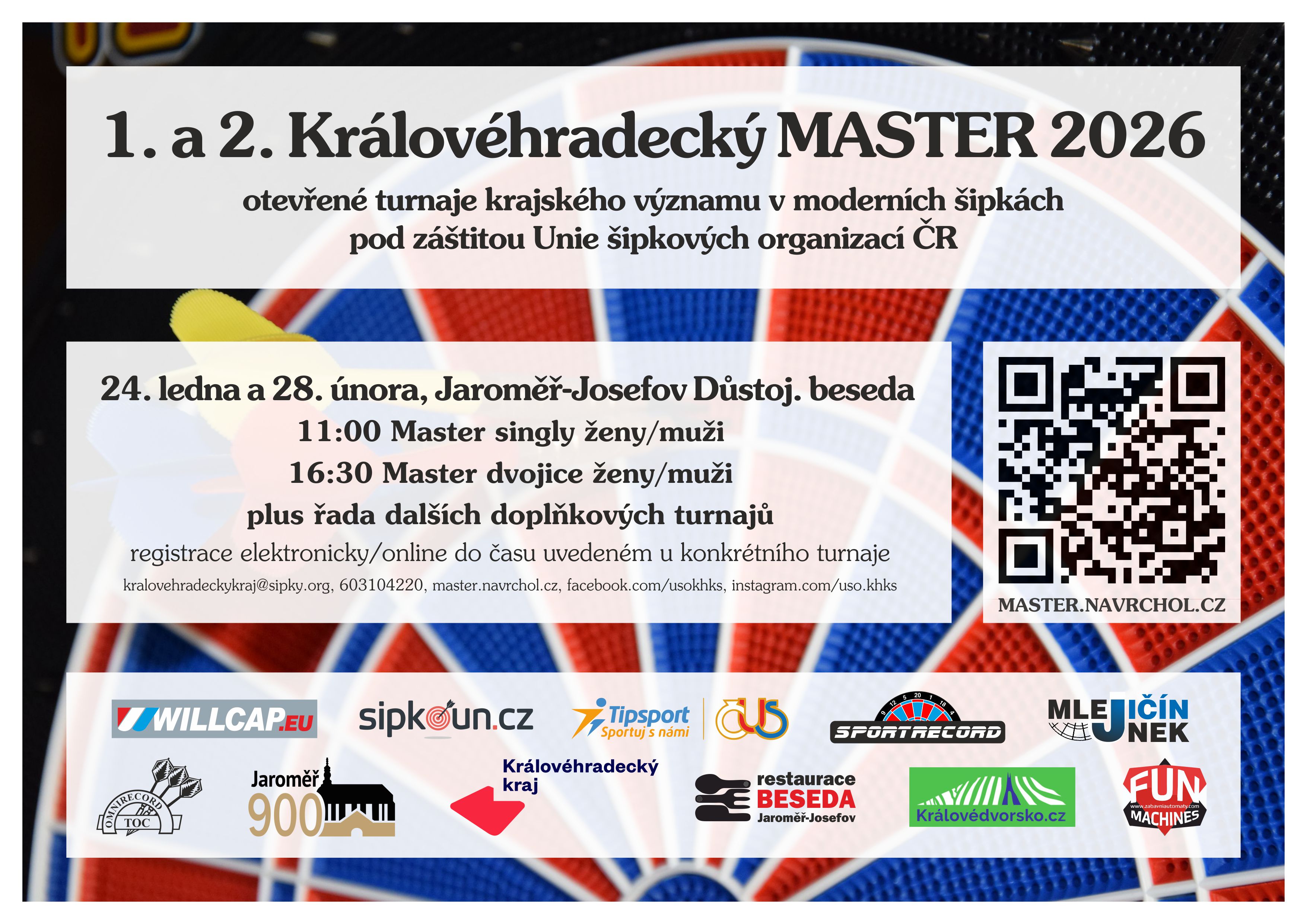 V Důstojnické besedě v Josefově proběhnou dva nejvýznamnější šipkové turnaje v našem kraji – první a druhý Královéhradecký Master Unie šipkových organizací. Oba podniky jsou bodově zvýhodněné pro krajské i celostátní žebříčky, proto se můžete těšit na účast špičkových hráčů.